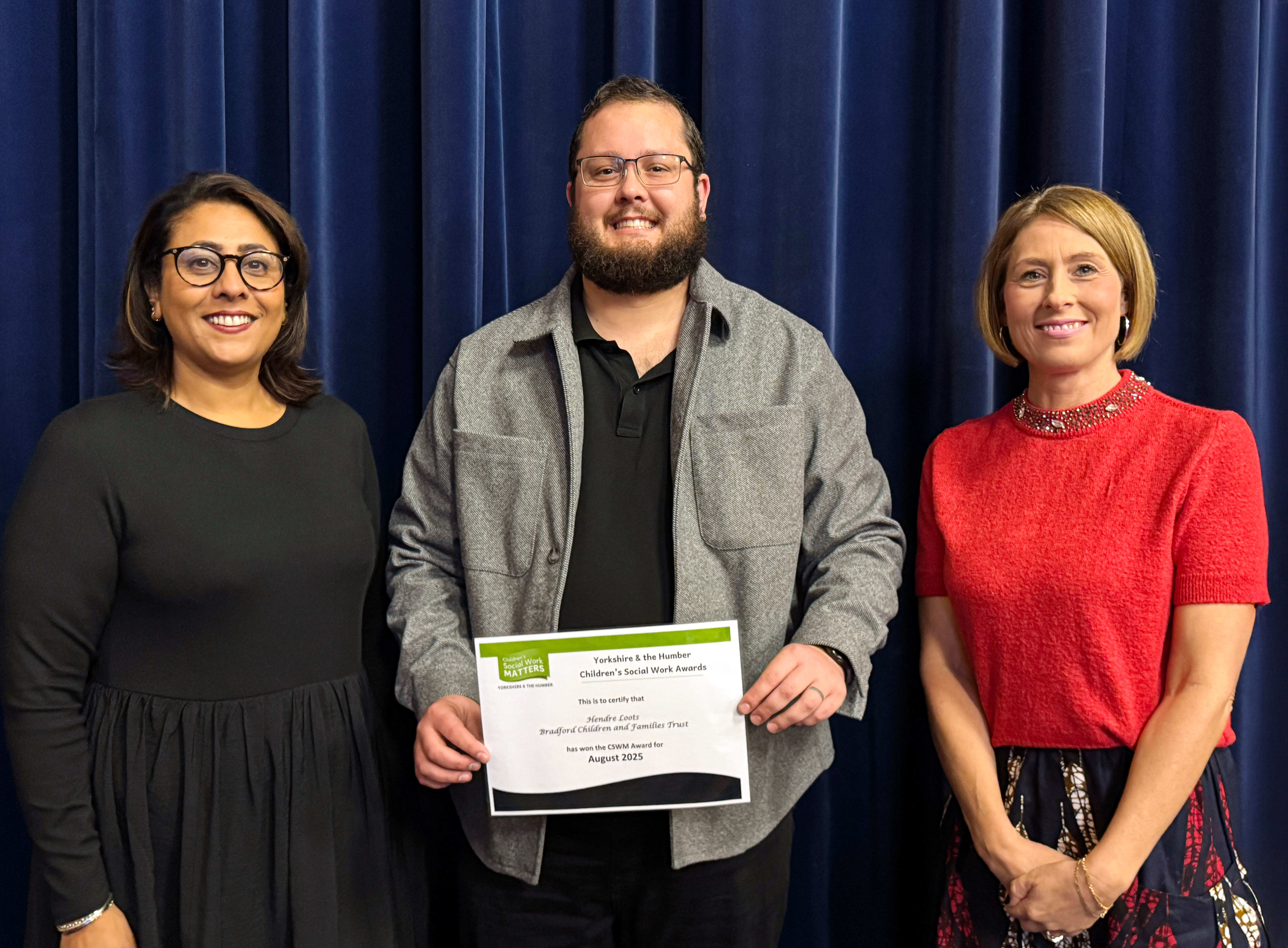 Our latest regional award winner for the month of August was selected by our judges from North Lincolnshire. Congratulations to Hendre Loots from Bradford Children and Families Trust, who was nominated for his dedication and exceptional hard work, consistently going above and beyond the call of duty to support his Team. He was praised as both reliable and very child-centred in his approach, with his support making a significant difference to the service in Bradford.